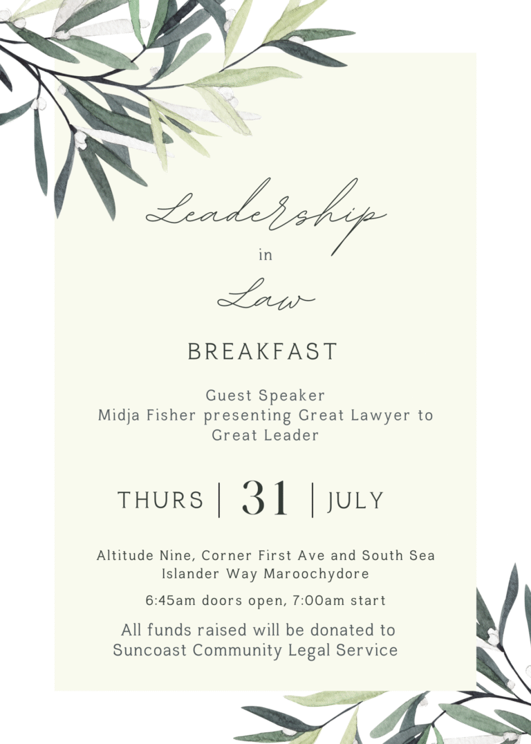 Tickets are now on sale for our Leadership in Law Breakfast on Thursday, 31 July at Altitude Nine, Maroochydore.